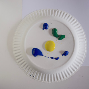 First, you are going to flip your plate over (we are using the bottom) and place a few dabs of paint on the base. Next, have your gardeners use their fingers to swirl the paint, just enough to give it that marbled feel. Then, flip your plate over on top of your blank sheet of paper so that the paint transfers.